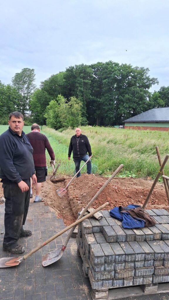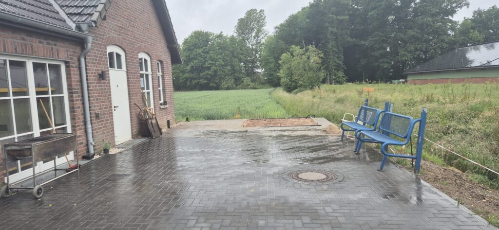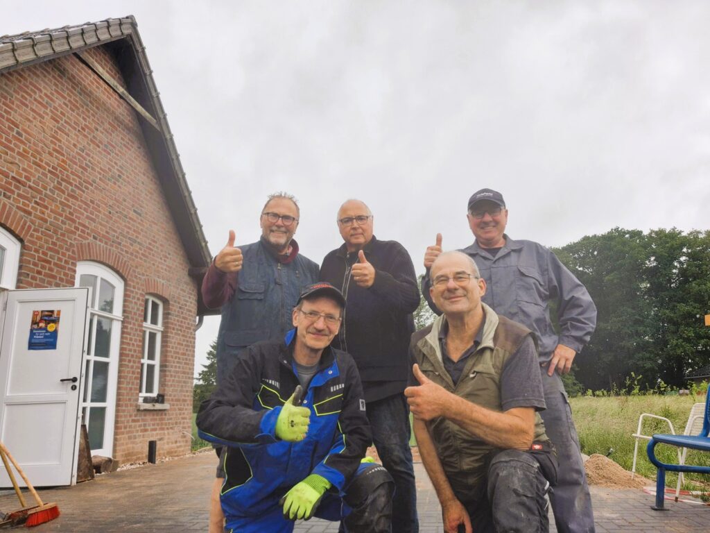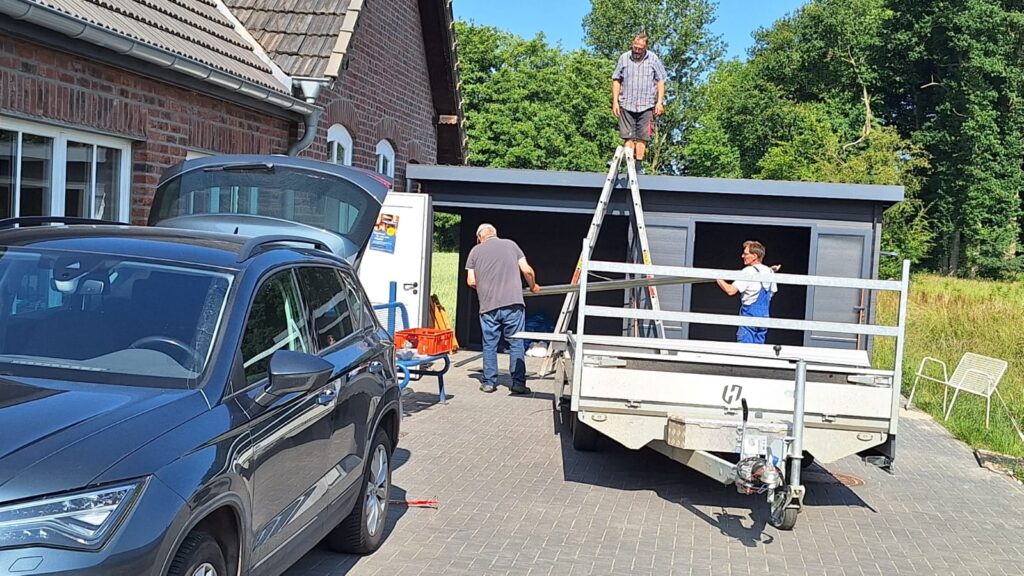Die gesamte St. Maria Magdalena Bruderschaft e.V. freut sich über die großzügige finanzielle Unterstützung der Stiftung „Dä Geldersche Energiewende“ zur Anschaffung eines Gartenhauses mit Terrasse in Anthrazit. Das Gartenhaus wurde direkt neben dem neu gebauten Vereinsheim (in über 300 Stunden Eigenleistung von Bruderschaftsmitglieder) ehrenamtlich aufgebaut. Das Bauteam (Heiner Janssen, Ernst Cleve, Andre Seegers, Franz Post, Paul Kempkens, Christian Cleve – nicht auf dem Foto Paul Quinders und Hans-Jakob Kempkens) bereitete zunächst die Stellfläche vor, wie z.B. neues Pflaster, Randsteine und Stromversorgung. Das Gartenhaus dient als Lagerfläche für Gartenmöbel, Tische, Bänke usw. und die Lounge als zusätzliche Unterstellfläche für Gruppen bei den Schießsportveranstaltungen und sonstigen Vereinsaktivitäten. Der Standort ist ideal. „Das Gartenhaus steht sehr zentral und schön schattig im Sommer“ und passt hervorragend ins Gesamtbild.