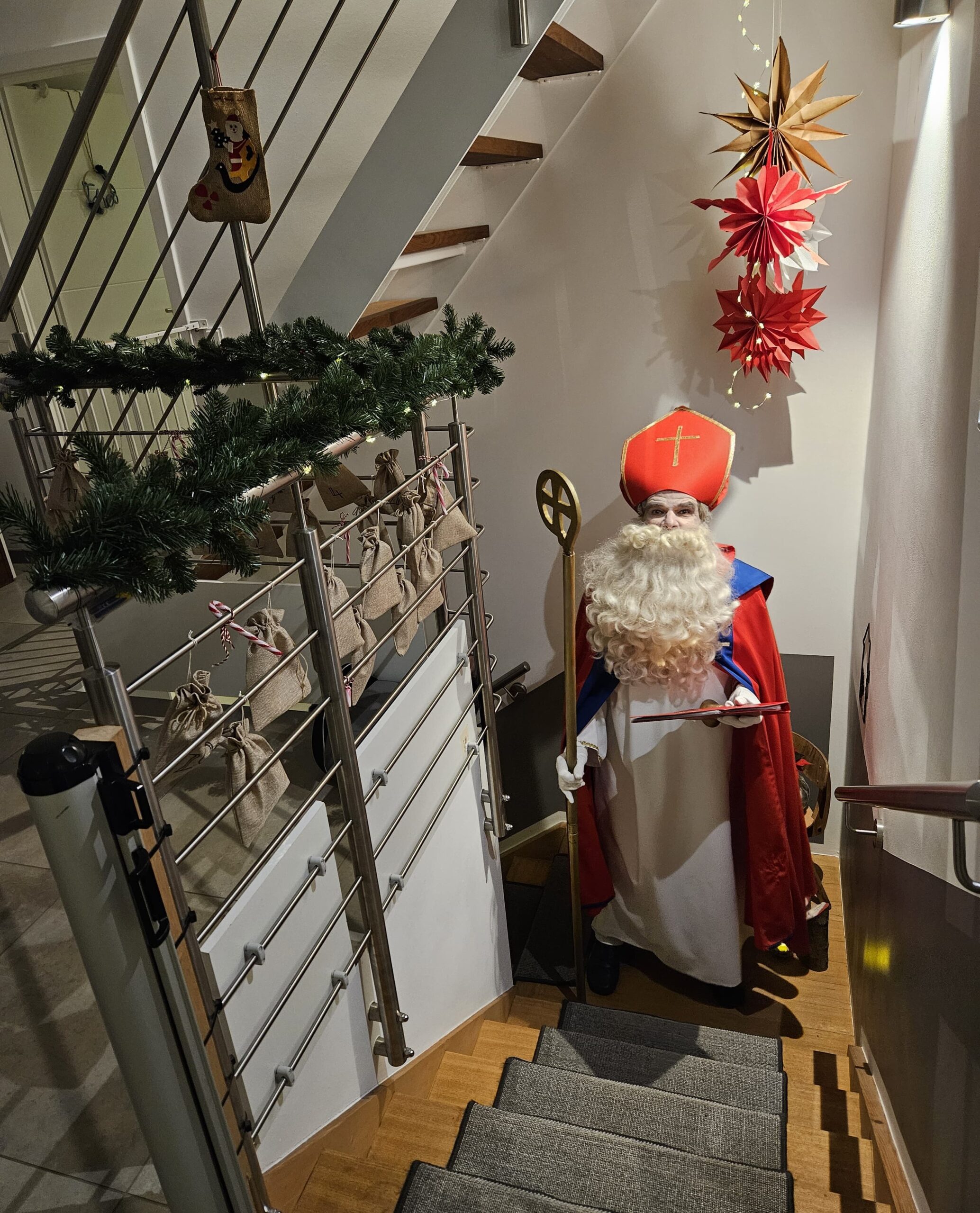 Auch in diesem Jahr durfte unser Nikolaus zahlreiche Familien mit Kindern besuchen – ein Erlebnis, das für leuchtende Augen und besondere Momente sorgte. Mit seinem traditionellen roten Gewand, dem langen weißen Bart und dem goldenen Buch trat er in die Wohnzimmer der Familien und verbreitete festliche Stimmung.